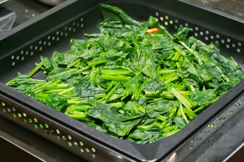 スチコン・スチームモード100℃ 5分でほうれん草を加熱