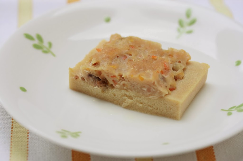今回のポイントは、高野豆腐が苦手でもおいしく食べることができるように、ひき肉を挟むのをやめて上にのせたところです。見た目も良くなりました。