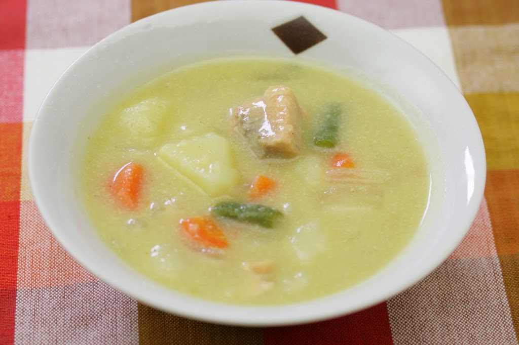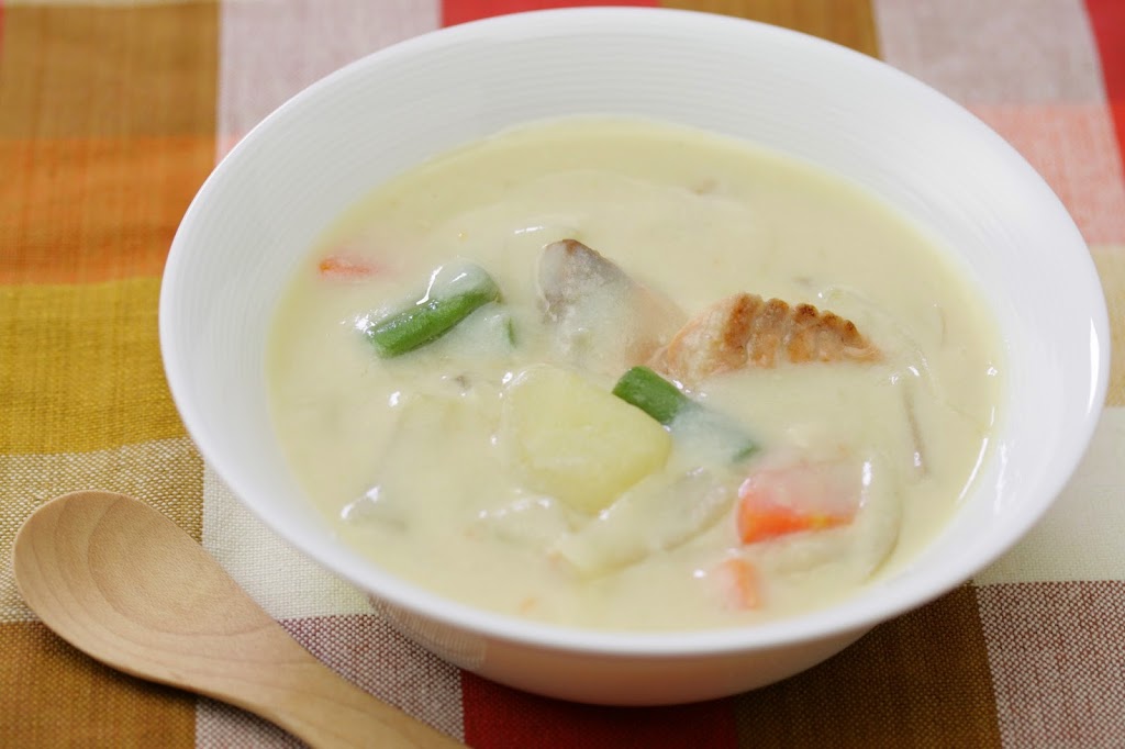 豆乳の味がとってもやさしく、なめらかでおいしいシチューができあがりました。