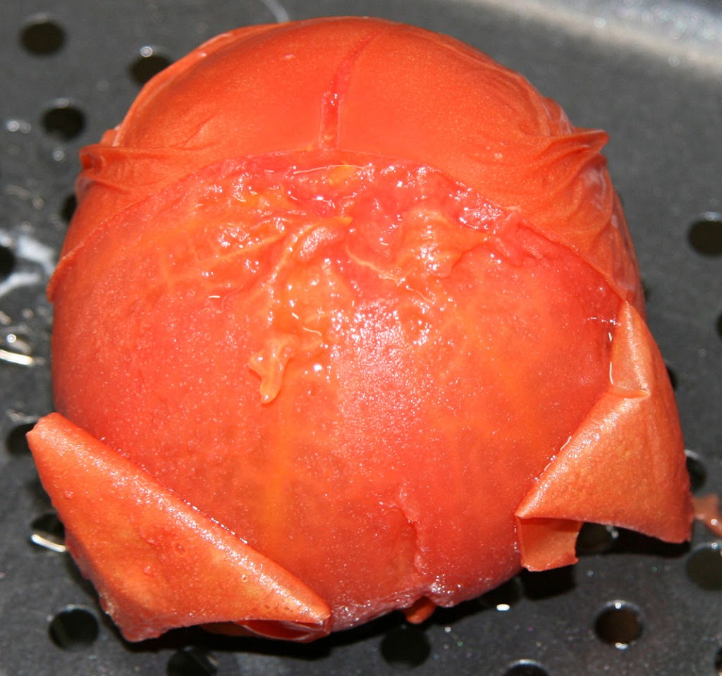 加熱が終了し、トマトの皮を剥いてみたところ簡単に皮を剥くことが出来ました。