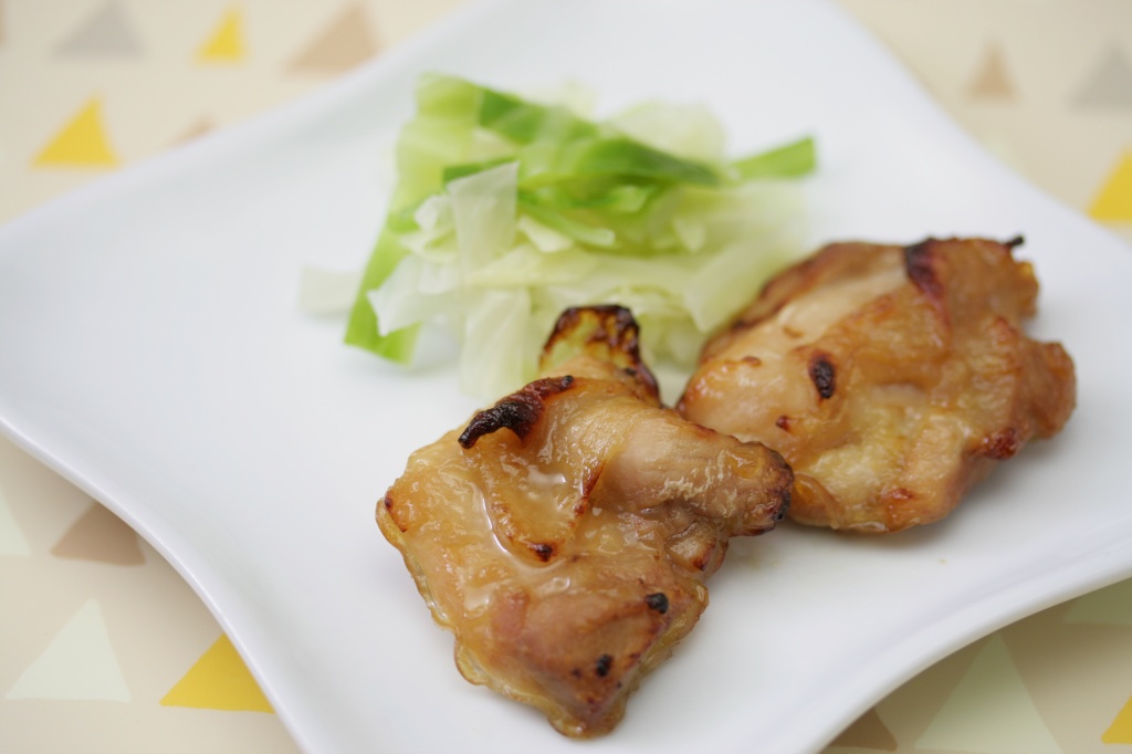 1 鶏肉(1人2切れ)にしょうゆ、砂糖、塩をからめ、10分ほどつけ込む。