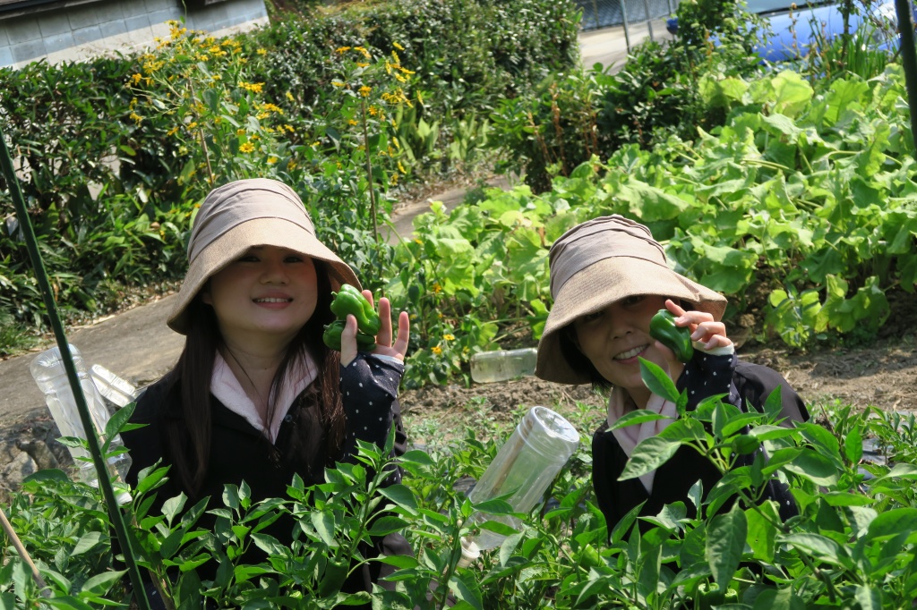 今回、収穫させていただいたのは、ピーマン、とうがらし、なす、にんじん、ゴーヤ、バジル、みょうが等、、、、