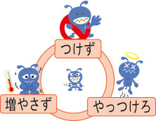 ばい菌をつけず、増やさず、やっつけろ! admin 衛生管理 2013年6月10日2016年8月29日 全国的に梅雨に入りました。 食中毒を起こす菌が活発に繁殖する「じめじめ、むしむし」した季節になりました。味や味覚に変化がなくても、菌が繁殖した食品は食べると数時間後に現象が現れます。 とくに体の小さい子どもは十分気を付けましょう。 「わんぱくランチWEB」食育イラスト-菌をつけないーはこちら