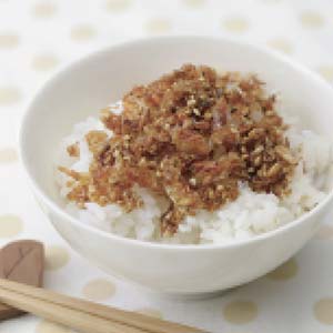 ◎ヒジキやシラスを混ぜたり、手づくりふりかけを載せた味付きご飯を増やす。