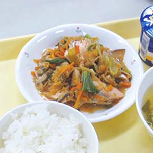 挑戦といえば、「ちまき」も好例の一つです。スチコンと鍋火、どちらの方がおいしく作れるのか、試してみたそうです。その結果、スチコンだと固くなってしまったのだとか。これにより、スチコンも使い方次第ということがわかりました。こうしたチャレンジ精神もあって、スチコンを最大限に活用したメニューバリエーションが、ぐんと広がりました。そこでこれまでスチコンのメニューの中で、園児たちに好評だったメニューをお聞きしました。すると鮭のちゃんちゃん焼き、ジャーマンポテト、マーブルケーキなどが好評だったそうです。訪問時に「鮭のちゃんちゃん焼き」をごちそうになりました。巻末にレシピを掲載しました。ぜひ参考にしてください。