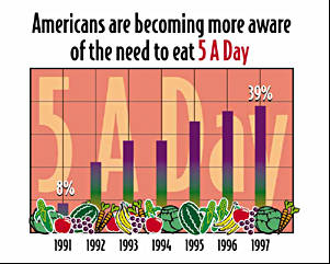 ■The 5 A Day運動ザ・ファイブ・ア・デイ運動という運動が、アメリカ合衆国で盛況になっている。 これは、国立ガン研究所の支援を受けているベターヘルス財団というNPO団体が運営 している運動で、文字どおり、一日5サービング以上の野菜もしくは果物を摂取しようという運動だ。 このサイトには、こどもの食教育プログラムや5ADAYが開発した、食教育教材、野菜 を使用した料理のレシピ、活動の写真、活動を紹介したマスコミの記事などが豊富に記 述されていて、たいへんに読みごたえがある。 http://www.5aday.com/ 現在、ザ・ファイブ・ア・デイ運動には、35,000店以上の地域食料品店と、 野菜の生産者が参加、「5ADAYのロゴを野菜や果物に添付したり、店舗にポスターを 貼ったりして健康に対する関心を高めていこうという運動を展開している。1,800以上の 団体がこの運動に加盟している。 ■食の科学の普及にも配慮 野菜や果物がガンのリスクを低減することはよく知られている。ベターヘルス財団は、最近、 数百の論文を精査して、野菜や果物をたくさん摂取することが、ガン、心臓疾患、脳出血、肥満、糖 尿病などの予防に効果があり、周産期の障害などにも影響があるとしている。国立ガン研究所 がこのサイトに積極的に応援を行っていることも大きい。一日5サービング以上の果物野菜を 摂取している人は、1〜2サービングの人に比べてガンになるリスクは1/2であるというような 研究リポートも紹介されている。 1991年の運動開始時には、ザ・ファイブ・ア・デイ運動を知っている消費者は8%であったが、 1997年には39%に増加している。意識の問題だけではなく、実際に、運動の効果があがり、 スーパーマーケットで果物と野菜の販売量が増加、1991年3.9サービングの消費量であったも のが、1994年では4.4サービングになっているなどの効果が実際に上がってきている。 アメリカ合衆国政府は、ザ・ファイブ・ア・デイ運動を定着させるため、毎年6月1日から 30日を「国民の果物と野菜月間」としたり、9月10日から16日を「国民の5ADAY週間」と 定めたりして、啓発運動を支援している。このように、アメリカ合衆国の健康に対する意識 改革は急速に進展してきており、数年後は「アメリカ合衆国の食習慣はひどいもんだ」と いってはいられないかもしれない。 |